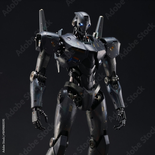 © Pixel Matrix, Fototapeta premium Dark background silhouette of glowing-eyed robot