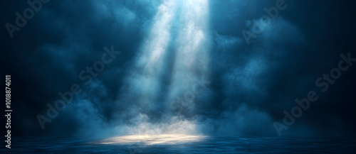 © Yehhen Kutsenko, Obraz premium Dark background, spotlight on the ground, light beam, light rays, fog effect