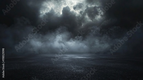 © Voilla, Obraz premium Dark background with fog and a wet asphalt surface.