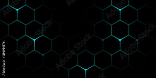 © hossain, Fototapeta premium Dark Background with Glowing Hexagonal Network. Digital Abstract Hex Grid with Bright Light Nodes. Hexagon. Illustration. Vector.