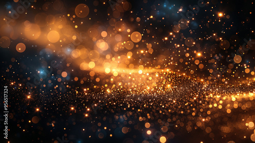 © Anatoli, Naklejka premium Dark background with gold glitter close-up