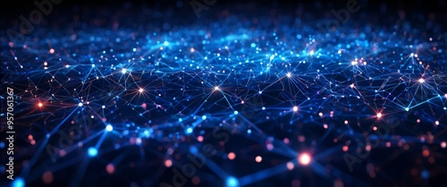 © Nipon, Obraz premium dark background with many connected lines and dots