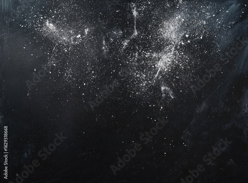 Fototapeta premium Dark background with scattered white dust and speckles, creating a textured,...