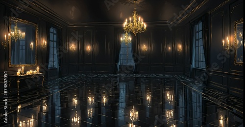 Obraz premium dark ballroom palace mansion castle room interior at night. luxury gothic...