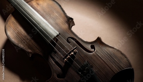 © Oleh Marchak, Fototapeta premium Dark beige firefly violin showcasing intricate design and craftsmanship positioned against soft lighting for artistic effect