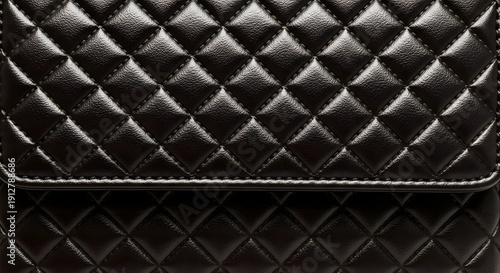 © Blade Bf, Obraz premium Dark black quilted texture with shiny patent leather diamond pattern, elegant surface for luxurious fashion accessory design