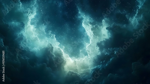 Fototapeta premium Dark Blue Abstract Background with White Stars and Light Blue Clouds