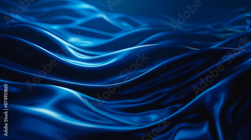 © Alina Tymofieieva, Obraz premium Dark blue abstract moving smoothed lines with futuristic glowing effect and empty blank background