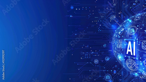 © Agnieszka, Obraz premium Dark Blue AI Circuit Background