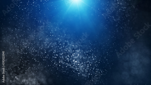© kokotewan, Fototapeta premium Dark blue and glow particle abstract background light ray beam effect.