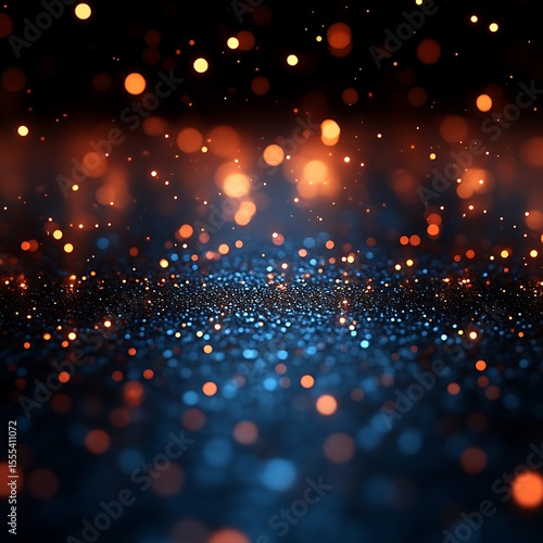 Obraz premium Dark blue and orange glitter bokeh background