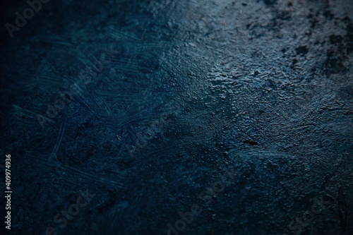 Fototapeta premium dark blue background, dark wall background. Empty workplace in front of...