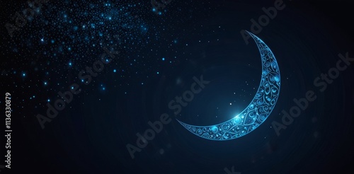 © yassine, Fototapeta premium Dark blue background Ramadan Kareem background banner. Islamic Greeting Cards for Muslim Holidays and Ramadan. banner with moon and stars.