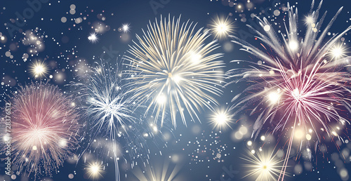 Naklejka premium Dark blue background with bokeh lights and burning bengal lights.