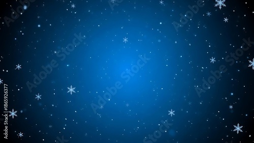 Fototapeta premium Dark blue background with falling snowflakes and gradient lighting
