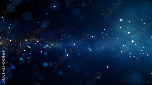 Obraz premium Dark blue background with glowing lights and bokeh, creating an atmosphere of...
