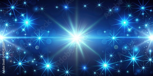 Fototapeta premium Dark blue background with glowing stars, lens flare and highlighted region,...
