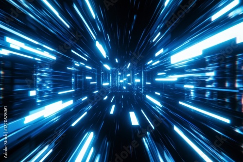 Fototapeta premium Dark blue background with light beams and glowing lines, creating an...