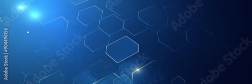 Obraz premium Dark Blue Background with White Futuristic Technology Lines and Hexagons for an Abstract Tech-Inspired Banner Design