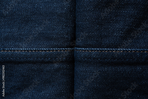 © wachiwit, Naklejka premium Dark blue denim jeans texture background with cross lines