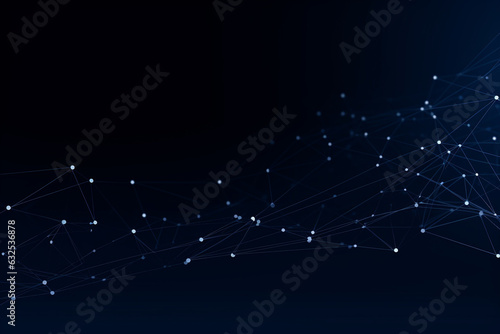 Fototapeta premium Dark blue geometric plexus abstract background with lines and dots, technology, tech, Generative AI