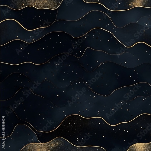 © rotibakar, Naklejka premium Dark Blue Gold Wave Abstract.