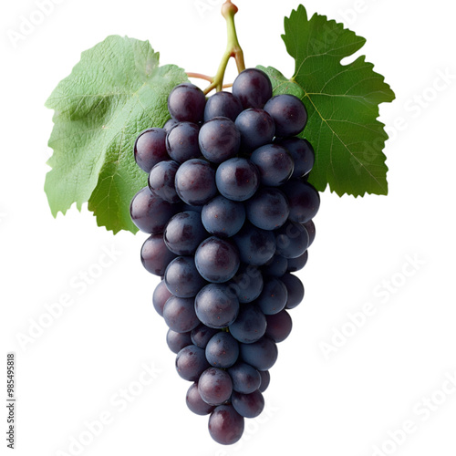 © Bilal Graphics, Fototapeta premium Dark blue grape with leaves isolated on white and transparent background. PNG cutout.