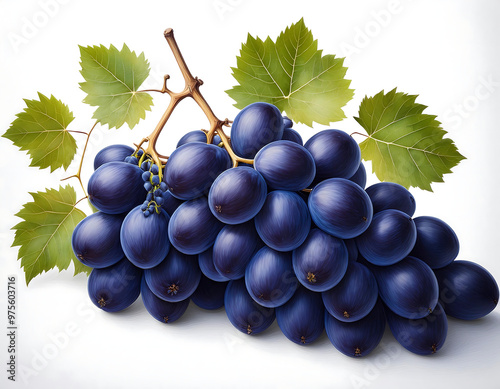 © fotoluigi868, Fototapeta premium Dark blue grapes with leaves, isolated on a white background, ideal for food or wine-relate_1(310)