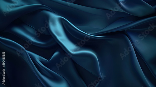 Obraz premium Dark Blue Luxurious Silk Satin: Opulent, Glossy, and Elegant Background Designs. Generative AI Illustration.