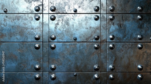 © scrdy, Fototapeta premium Dark Blue Metallic Background, Industrial Steel Texture, Rivets