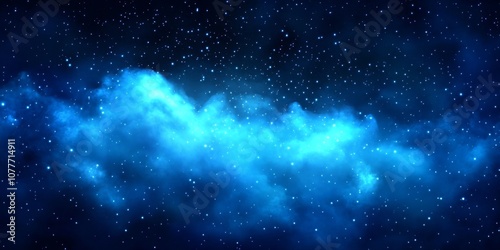 © Panuwat, Naklejka premium Dark blue night sky filled small white stars watercolor space background