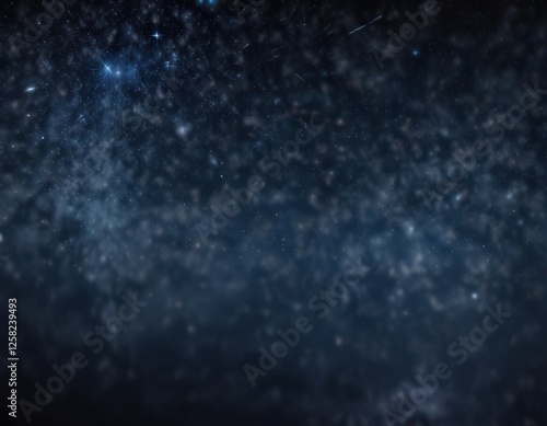 Fototapeta premium Dark blue night sky with glittering stars and a subtle sparkle in the bokeh effect, celestial scene, dark blue frame, night sky