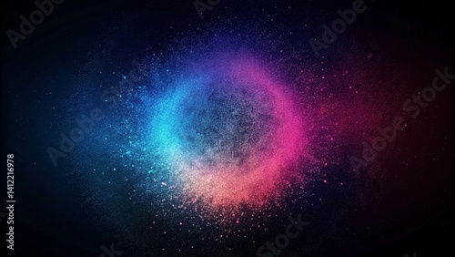 © Abir, Fototapeta premium Dark blue pink black abstract grainy background, glowing vibrant color gradient shape, noise texture poster header banner wallpaper cover design