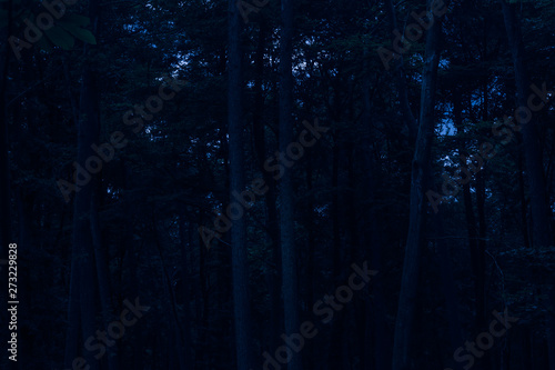 © Daniel Doorakkers, Fototapeta premium Dark blue scary morning forest