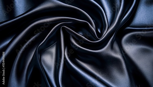 Obraz premium Dark Blue Silk Fabric, Luxurious Draped Texture, Elegant and Smooth Surface