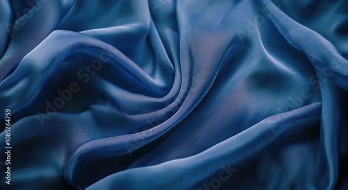 © YONG, Obraz premium Dark blue silk fabric with folds, a background for design and decoration