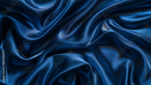 Obraz premium Dark blue silk satin background with soft folds on shiny fabric Luxury...