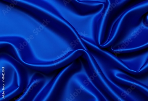 Obraz premium Dark blue silk satin texture, wavy pleats, shiny fabric, abstract background, liquid wave effect, wallpaper, pleats