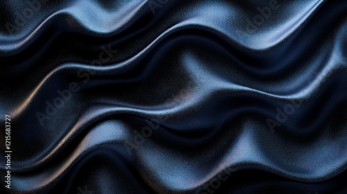 Fototapeta premium Dark blue silk waves, draped fabric texture, background, design