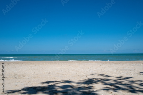 Fototapeta premium Dark blue sky on the sand beach, Thailand
