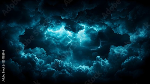Fototapeta premium Dark Blue Storm Clouds with Bright Lightning