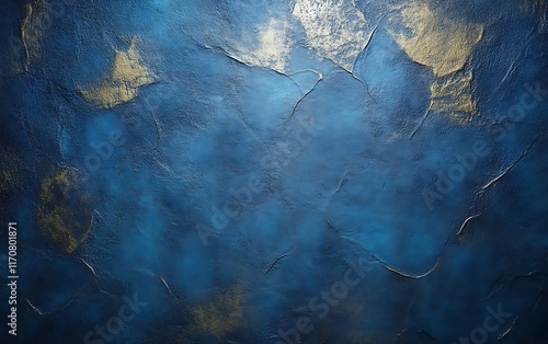 Fototapeta premium Dark blue textured wall with gold highlights.