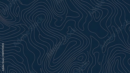 © Sabit, Obraz premium Dark blue topographic map background with white contour lines