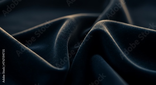 Obraz premium Dark blue velvet fabric folds background with luxurious soft side lighting