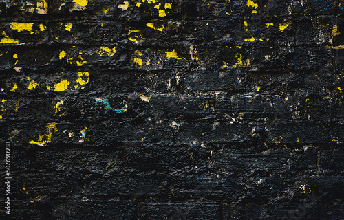 © Kseniya Iv, Obraz premium Dark brick. Black texture. Stone background. Dark marble. Rock texture. Rock surface with cracks. Rock pile. Paint spots wall. Grunge Rough structure. Abstract texture.
