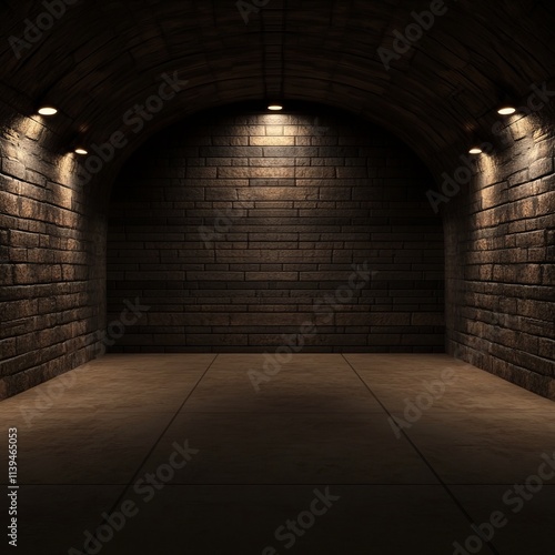 Obraz premium Dark Brick Tunnel Interior with Subtle Lighting