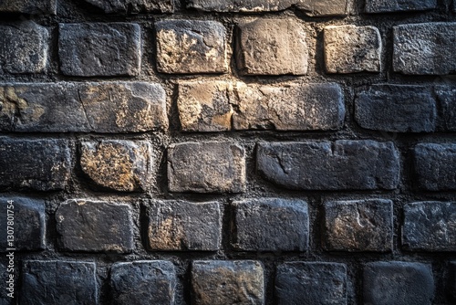 © Suradet Rakha, Obraz premium Dark Brick Wall Texture with Subtle Light and Shadow Effects