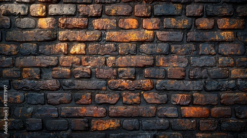 Obraz premium Dark brown brick wall with rich textures, evoking urban rawness and...
