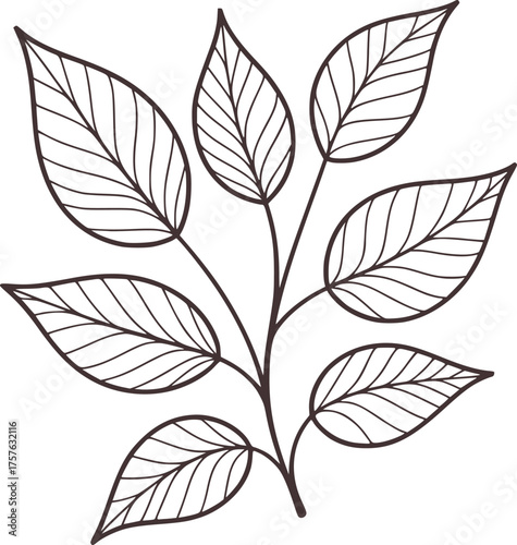Fototapeta premium Dark brown line art leaves with veins on white leaf plant