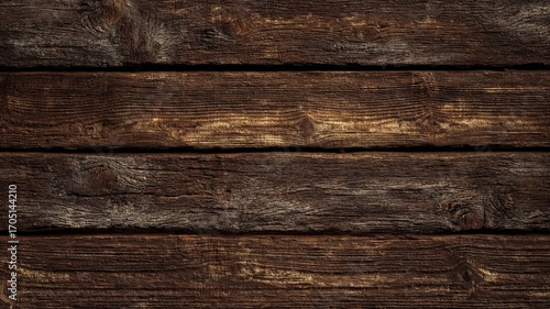 Fototapeta premium Dark brown natural wooden texture background with rustic plank surface, vintage timber grain pattern for wallpaper, interior design, digital backdrop, and decorative background element